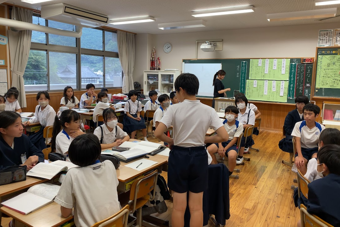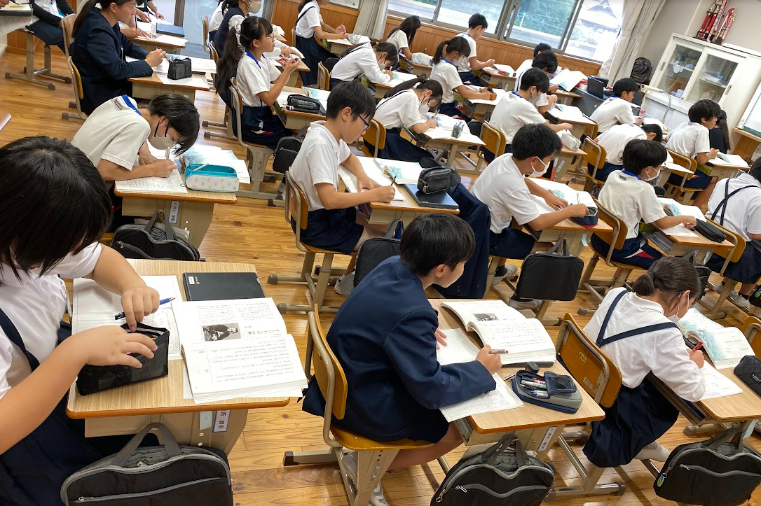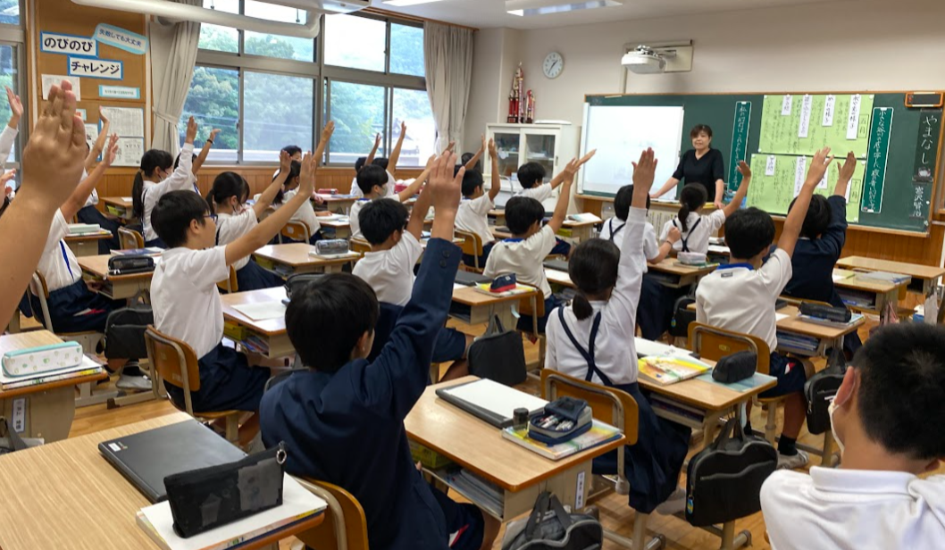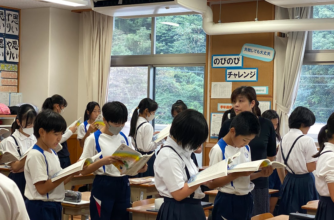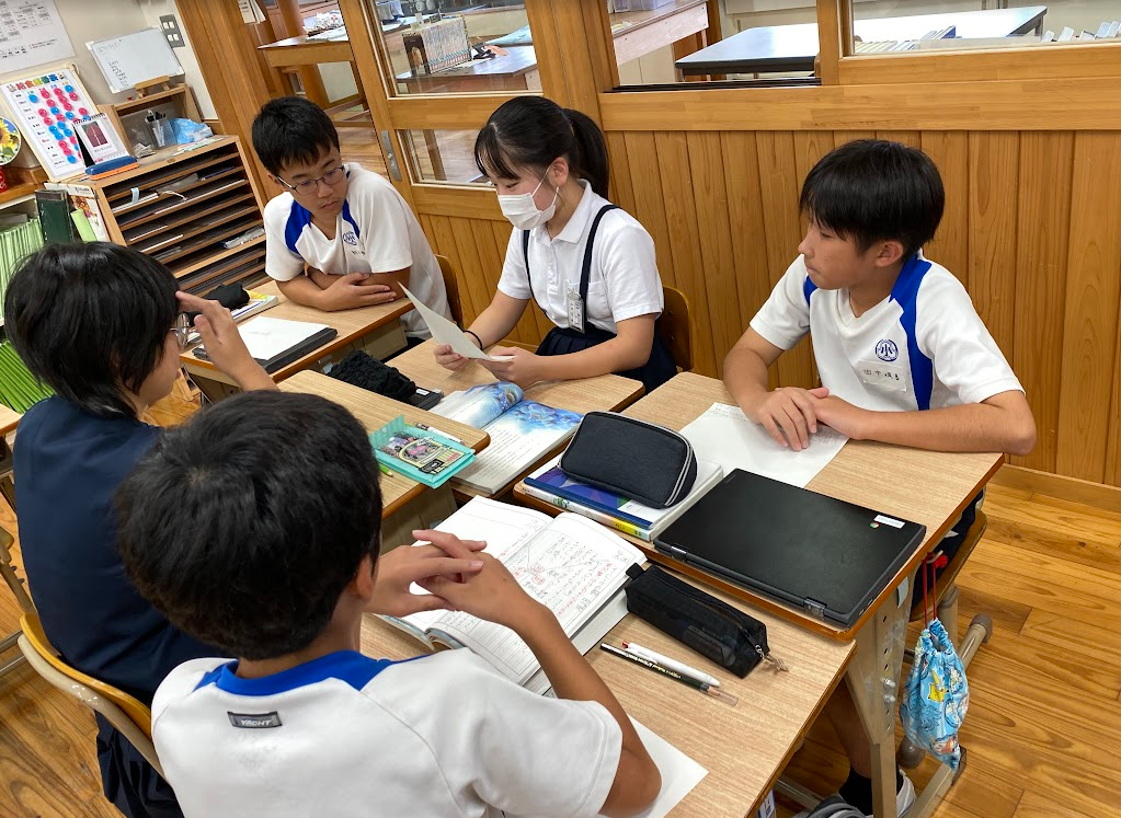 2025年10月22日 17時16分国語で宮沢賢治作 物語「やまなし」を学習している6年生。物語の題が「やまなし」となった理由を考える時間です。作者の生涯を知り、作品を味わう面白さを体験するために、様々な方法や手段を使って学んでいた三瓶っ子。宮沢賢治の他の作品を読んでみたい気持ちが高まった三瓶っ子も!物語の楽しみ方を知った6年生です。