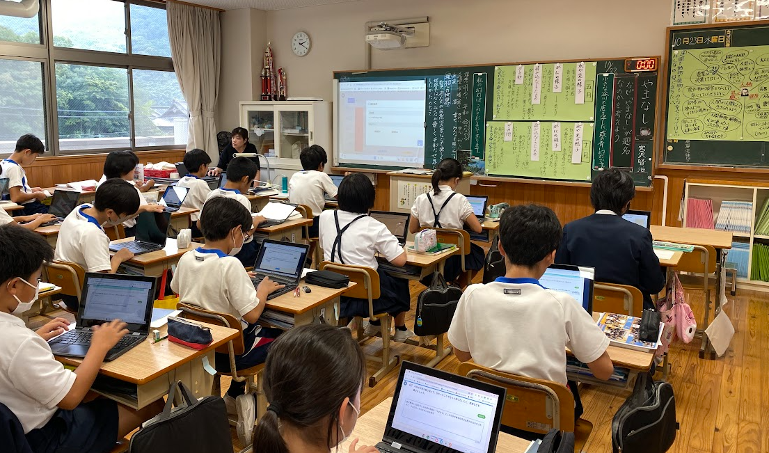国語で宮沢賢治作 物語「やまなし」を学習している6年生。物語の題が「やまなし」となった理由を考える時間です。作者の生涯を知り、作品を味わう面白さを体験するために、様々な方法や手段を使って学んでいた三瓶っ子。宮沢賢治の他の作品を読んでみたい気持ちが高まった三瓶っ子も!物語の楽しみ方を知った6年生です。