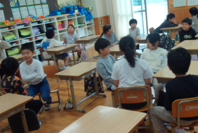 生活科かめたんまつりでのリーダー2年生は、明日の祭りに向けて、相談タイム。1・2年生の下校では、エイエイオー!と気合の掛け声が玄関に響きました。やる気いっぱいの三瓶っ子。
