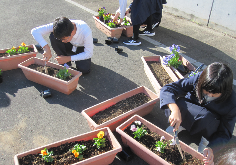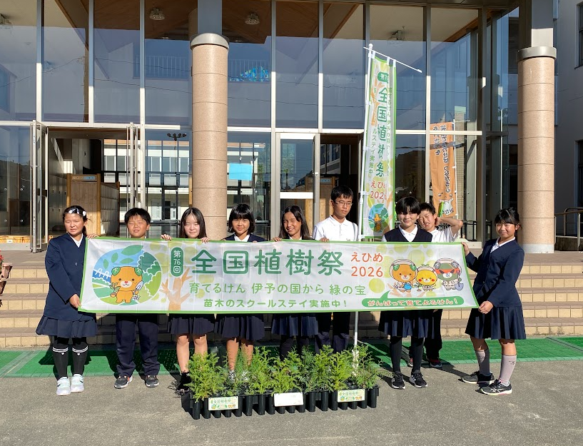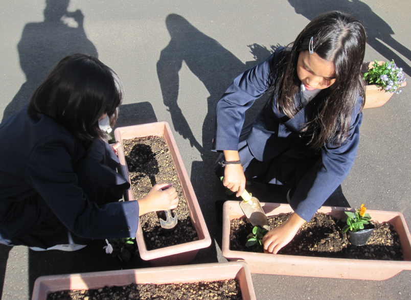 2025年10月29日 16時00分栽培委員会は、秋苗の植え替えに忙しい様子。先月届いた、来年度の植樹祭に向けた杉・ひのきの苗木も大切に世話をしている栽培委員。この日は、 ひと月たった苗木との記念撮影も行いました。