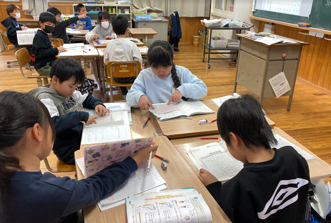 2026年1月29日 16時53分算数で概数の学習をいていた4年生。条件にあったおおよその数にするために、どうすればよいのか、答え合わせで確認をする三瓶っ子。