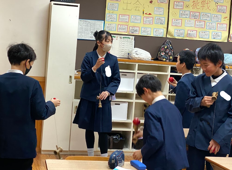 朝の会では、けん玉を練習する三瓶っ子。先日のもしかめ大会を経て、練習に力が入る三瓶っ子も!