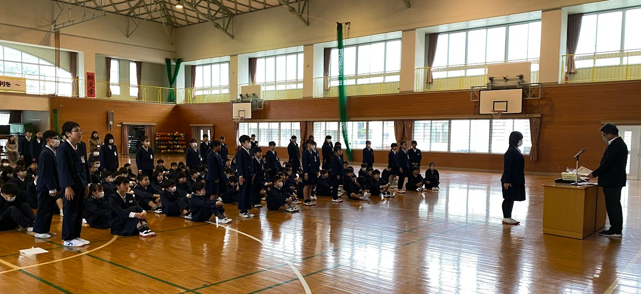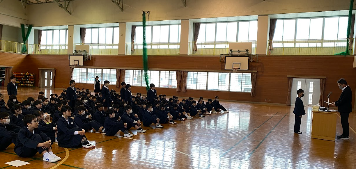 2026年3月4日 12時43分三瓶っ子の頑張りを称える賞状伝達式。朝一番に行いました。名前を読み上げられたとき、大きな声で返事をして立つことを目指しています。多くの児童が入賞を果たす地域の書き初めコンクールの結果もありました。次々に返事の声が体育館に響き、気持ちの良い時間となりました。