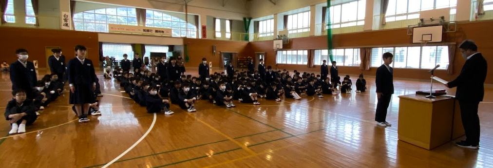 三瓶っ子の頑張りを称える賞状伝達式。朝一番に行いました。名前を読み上げられたとき、大きな声で返事をして立つことを目指しています。多くの児童が入賞を果たす地域の書き初めコンクールの結果もありました。次々に返事の声が体育館に響き、気持ちの良い時間となりました。