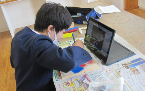 図工の学習で、電動糸のこぎりを使っていた5年生。慎重に、集中して作業を行います。色を付けていた三瓶っ子も丁寧に、ゆっくりと、作業を進めていました。作品を作ることを通して、身に着ける力があります。