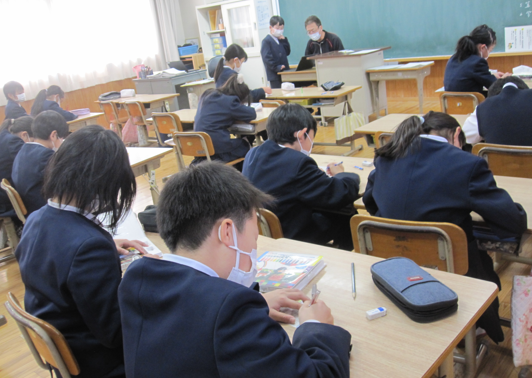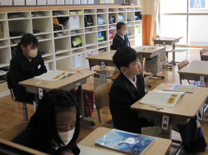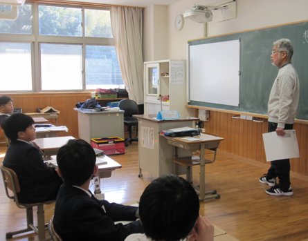国語で漢字の学習をしていた3年生。どうやって漢字を覚えていくのか。先生の話を集中して聞いていた三瓶っ子。どう考えていくと、言葉に合った漢字を書くことができるのか、先生は熱く語ります。