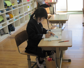 4年生は、カード作り。それぞれが丁寧に言葉を書き、色を付けていました。