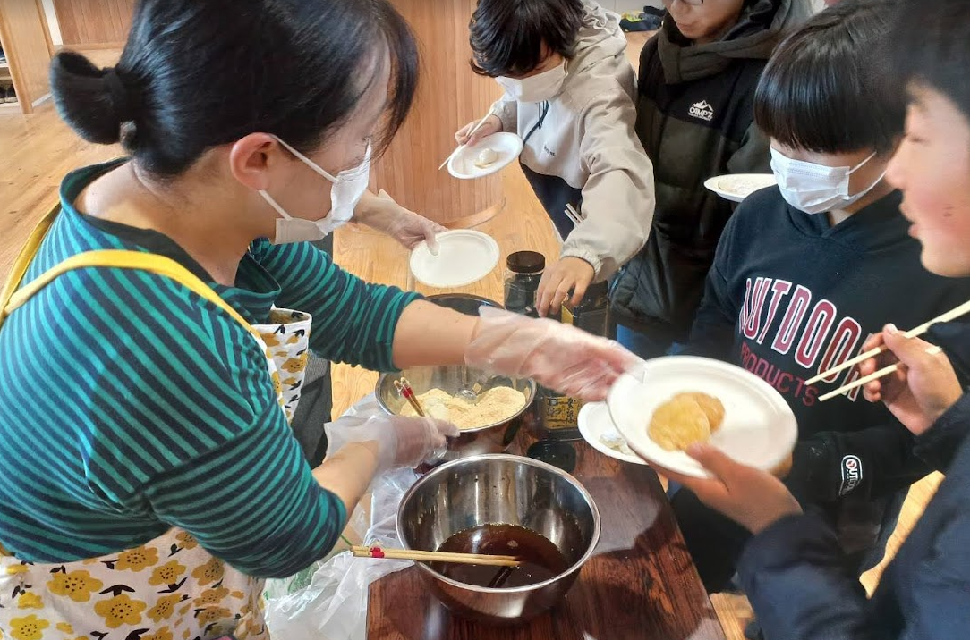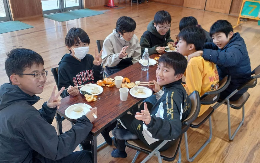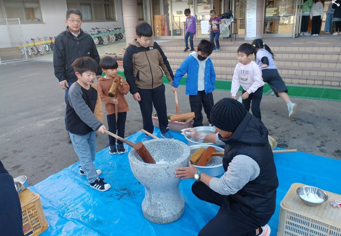 2025年12月7日 12時19分毎年恒例、かめパパの皆さんによる餅つきが行われました。たくさんの三瓶っ子が来校。お父さん、お母さんに教わりながら、餅つきや手取りの体験をした三瓶っ子。今年も餅をついて、餅を丸めて、たくさん食べて、おみやげの餅もいただいて大満足の三瓶っ子。御世話になったお父さんお母さんにお礼を言って帰りました。