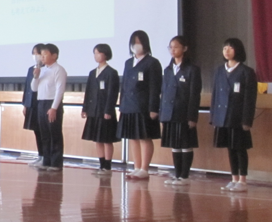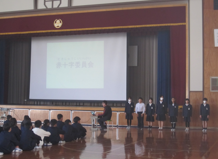 赤十字委員会の集会を行いました。全校で取り組んでいる、アルミ缶回収やペットボトルキャップの収集にどんな意味があるのか、説明がありました。そして、クイズを通して、もっと集めなくては!まだ足りないな…それぞれに考えた三瓶っ子です。最後にわかったこと考えたことを伝え合いました。