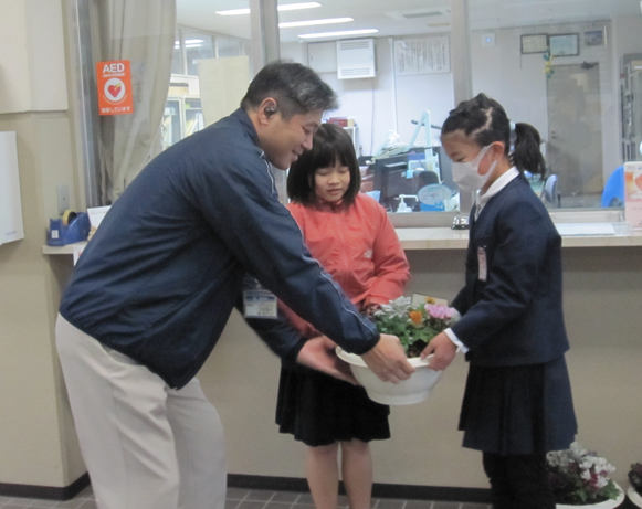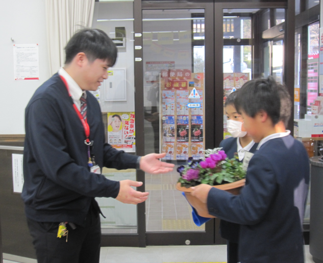 放課後、4年生が人権の花を配達しました。いつもお世話になっている地域づくり活動センターと近くの郵便局に。中に植えている球根(チューリップ、ムスカリ)が無事に芽をを出しますように。