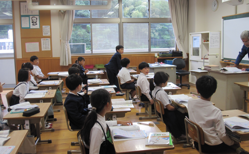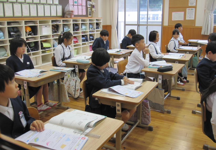 一つの問題で二つの考え方を学んだ2年生。学習したことの復習では、友達の発表を聞く、見守る三瓶っ子。自信をもって答える三瓶っ子。
