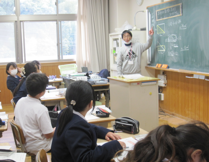 面積の学習をしていた5年生。どうしたら求められるのかな。先生とのやり取りで学習を進める三瓶っ子。